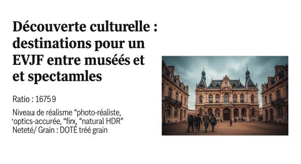 Destinations Par Maxime 5 Janvier 2026 Découverte culturelle : destinations pour un EVJF entre musées et spectacles Quand l’EVJF rime avec culture : vive la découverte entre musées et spectacles !. Traditionnellement associée à la fête, l’aventure ou le bien-être, l’organisation d’un enterrement de vie de jeune...