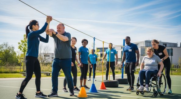 - Adaptez l’intensité : Variez les niveaux d’engagement pour que personne ne se sente exclu : combinez challenges dynamiques et ateliers plus calmes.